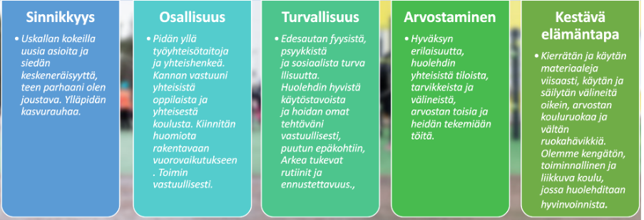 • Oppiminen: Opimme tulevaisuuden taitoja yhdessä toimien, tutkien ja oivaltaen.